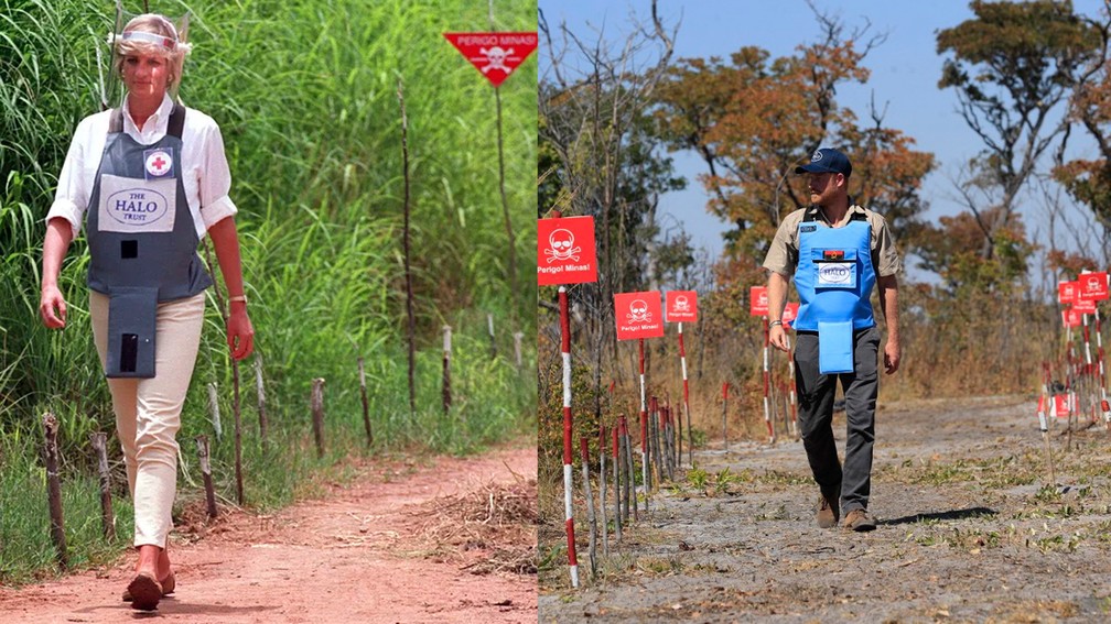 O príncipe Harry refaz imagem histórica da mãe ao caminhar sobre um campo minado no sul de Angola, na África, como Lady Di fez em 1997. Afastado da família real, Harry tenta repetir o legado de preocupação humanitária da princesa Diana.